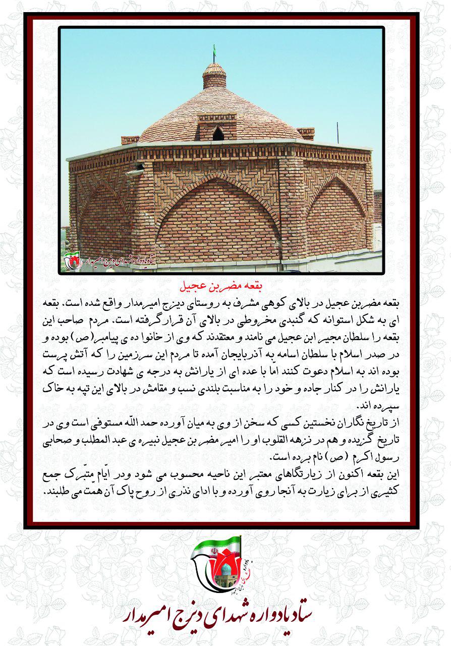 موقعیت:بقعه مضر بن عجیل در بالای کوهی مشرف به روستای دیزج امیر مدار واقع شده است
